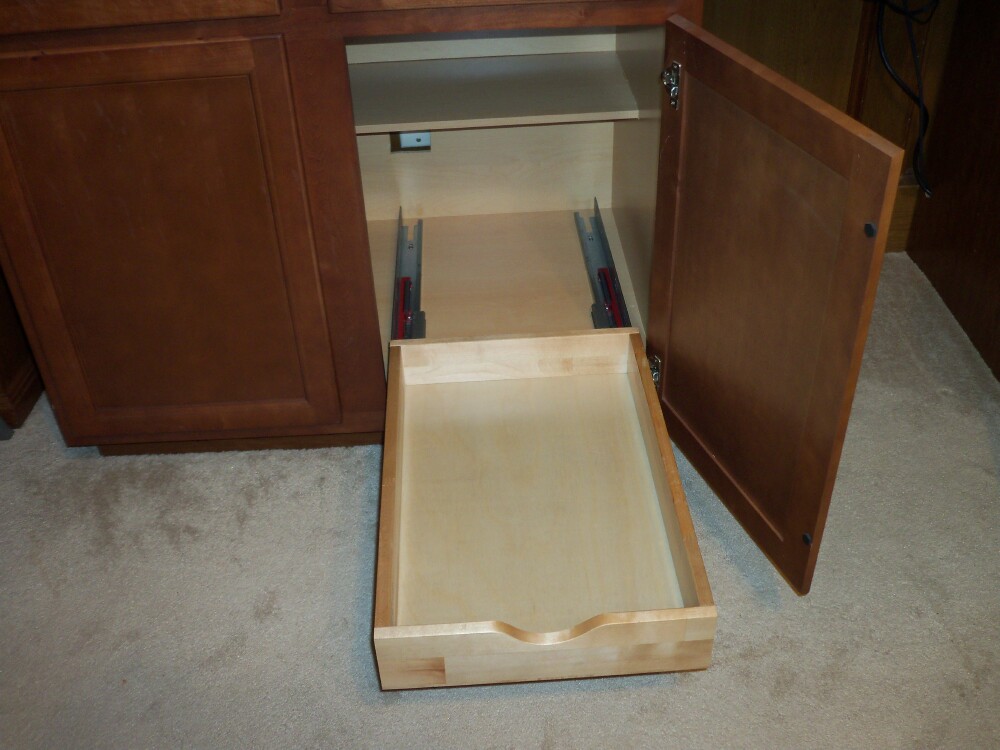 - Solid wood pullout/rollout shelf
